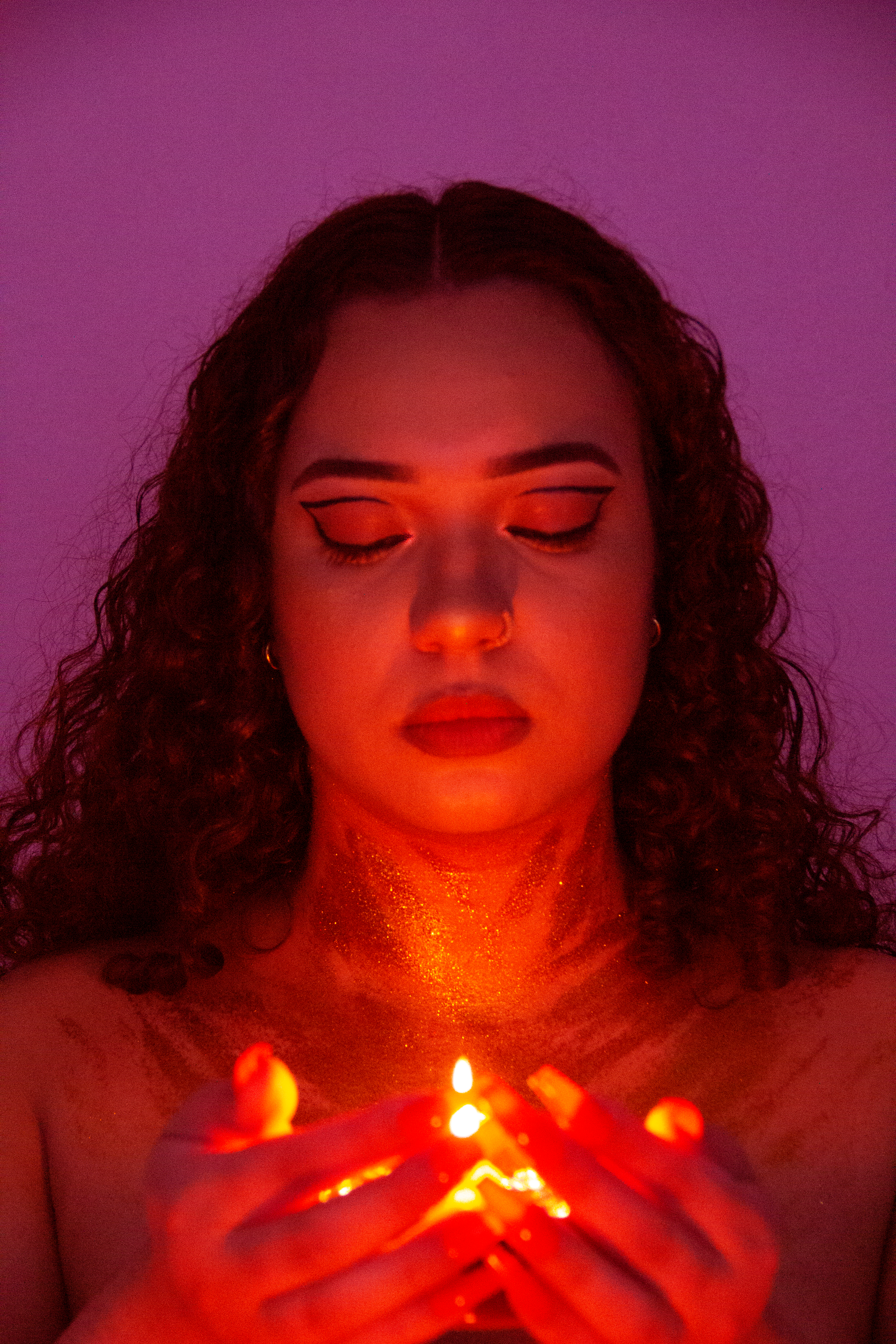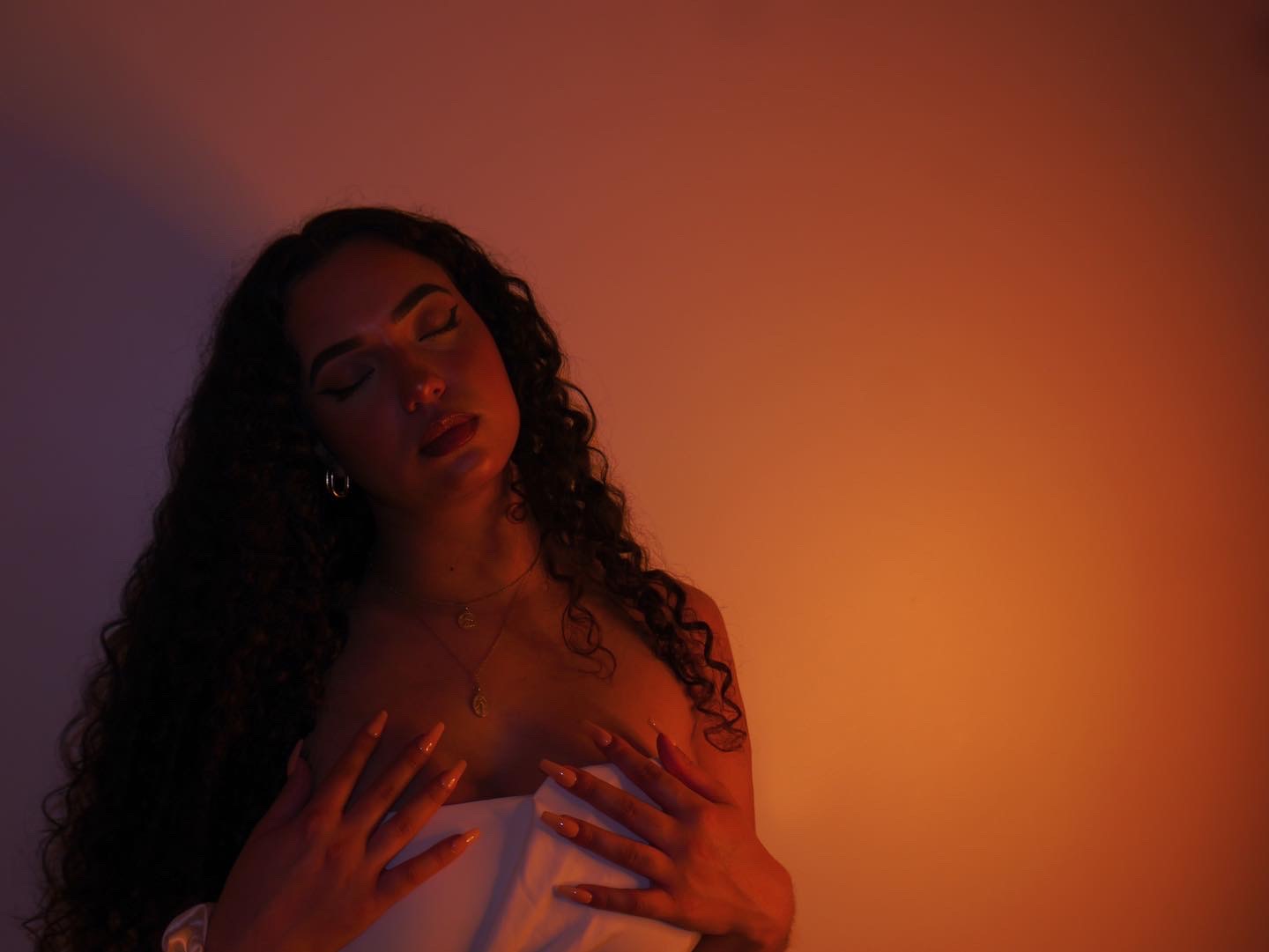 Dans une lumiรจre chaude et enveloppante, les visages se ferment doucement. Les yeux clos, les gestes deviennent silencieux, presque suspendus. Un moment intime oรน le corps et la lumiรจre se rencontrent.